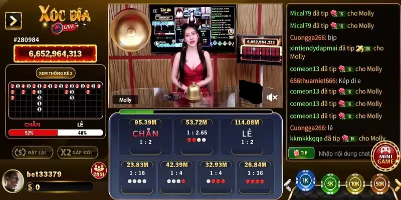 - Bước 4: Quay lại trang chủ, tìm kiếm game “Xóc đĩa” trong danh sách trò chơi. Nhấp vào game để vào bàn chơi, sau đó đặt cược theo các lựa chọn mình mong muốn cùng cách chơi xóc đĩa hợp lý và chờ kết quả.